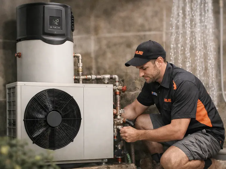 At MJE, we install heat pump hot water systems in Ballarat that deliver reliable hot water with lower running costs than many older systems. Clear advice, tidy installs, no mucking around.
